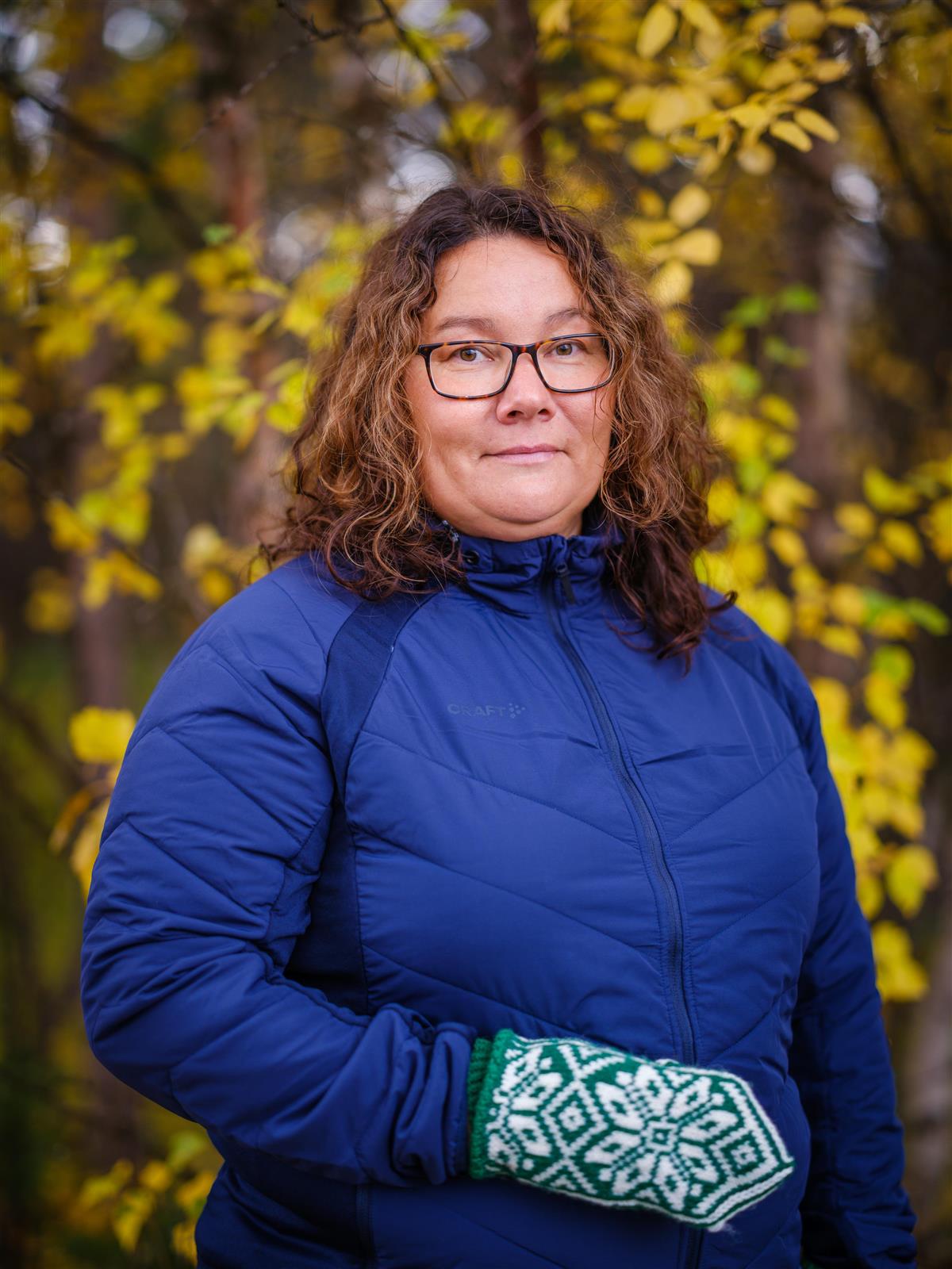 En kvinne står forran et høstgultnet tre.  - Klikk for stort bildeMobbeombud Gøril Figenschou. Ørjan Marakatt Bertelsen.